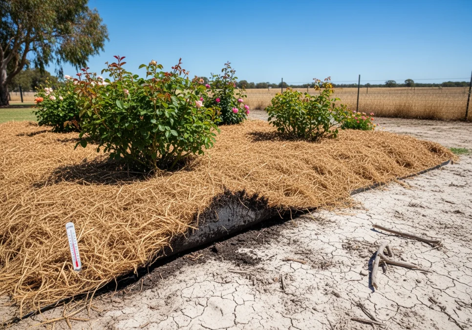 Perth’s summer soil surface temperatures regularly exceed 60°C in unprotected garden beds. That is hot enough to kill beneficial soil microbes, damage shallow plant roots, and evaporate soil moisture faster than most gardeners can replace it.