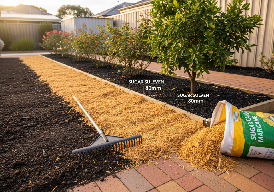 Perth gardeners face a specific challenge. Sandy soils drain fast, summer heat is relentless, and water restrictions mean every irrigation session needs to count. Applying sugar cane mulch correctly is one of the most reliable ways to address all three at once, but only when the depth is right, the timing is correct, and the soil is prepared before the first bag goes down.