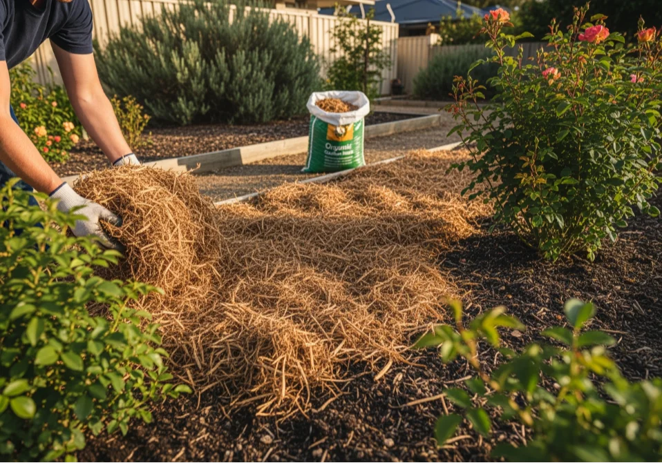 Plan to top up your mulch layer every 6–8 months. In Perth’s hot, dry climate, organic mulches break down faster than in cooler parts of Australia. That is a feature, not a problem. As the mulch decomposes, it actively builds your soil. Dig the remaining material lightly into the topsoil and apply a fresh layer on top.